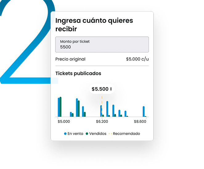Define el precio de ventaIndica cuánto quieres recibir por tus tickets, el medio de pago donde recibirás el dinero y publícalos a la venta ¡Podrás modificar estos datos en cualquier momento!